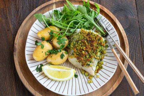 Cabillaud en croûte d'herbes et noisettes