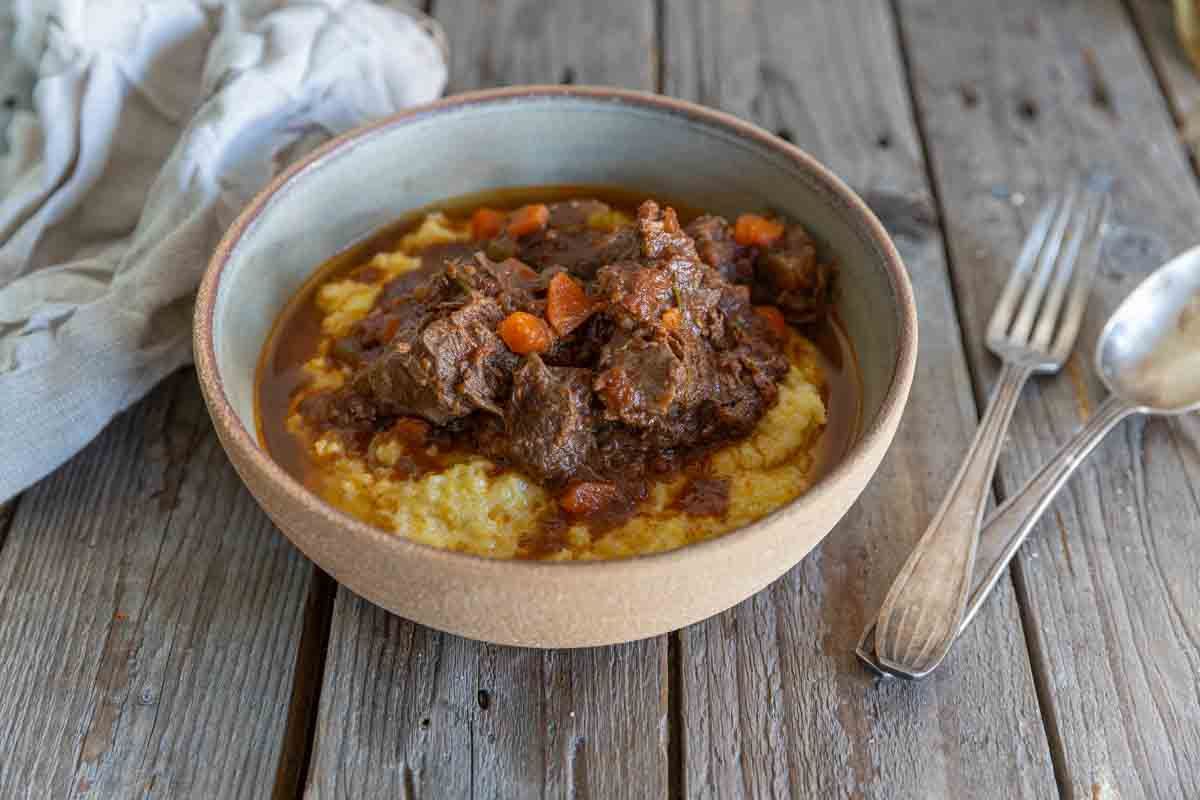 Pour sublimer ce plat, optez pour des accompagnements comme une polenta crémeuse ou des légumes rôtis. La polenta, préparée avec du lait et du fromage, est idéale pour absorber les saveurs du boeuf. Les légumes rôtis, croquants et légèrement caramélisés, apportent également une belle texture et un goût délicat.