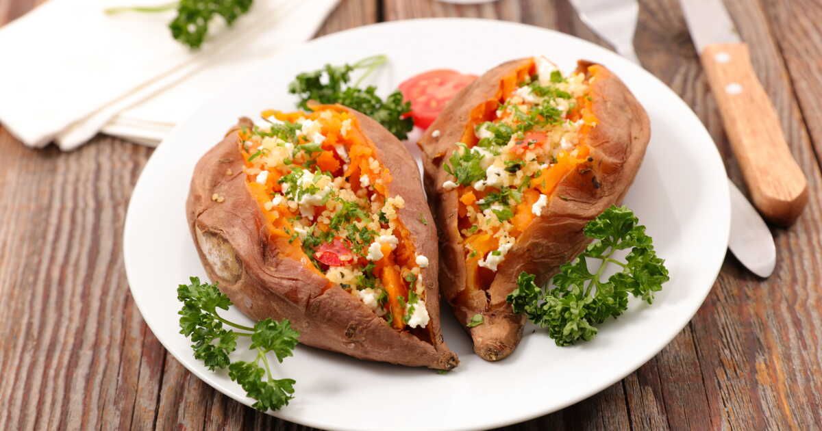 - Patates douces farcies : quadrillez la chair rôtie et garnissez de quinoa, légumes rôtis, fromage de chèvre ou de saumon émietté.